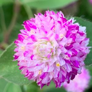 千日紅 別名 千日草 1000日間花を咲かせる植物。 ドライフラワーにしても色あせないようです。 近所の公園にて。 綺麗な色で、見惚れてしまいました✨