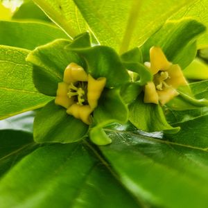 ピンポン玉くらいのサイズ 子どもの頃まん丸の小さな柿の実を噛ったら、真っ黒で甘かったことを思い出した。 柿色の皮と真っ黒な果肉を鮮明に覚えている。 この柿があの時食べた柿と同じ柿かどうか、色づく頃噛ってみよう 😋 🐒さん、私の分残しておいてくれるかな? 母が「黒砂糖」と教えてくれたけど、ほんとの名前は未だに不明。 ご存知の方教えて下さいな😄