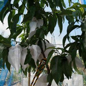 大久保桃🍑に害獣防止ネットを張ってみました。 ネットを張れるのも木が小さいときだけです。