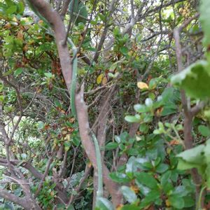 いつぞやのフォトに載せたことがあった、ミルクブッシュだと思われるヤツ。 この春からツツジの木陰に置いておいたら、こんなことになっていた。 一本ノビノビ~っとしてたので、枝に寄りかからせていたら、巻き付いているんだけれど? こいつって、こんなヤツなのかしら?