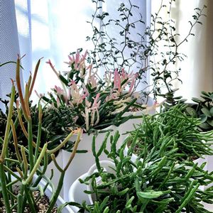 外は危険レベルな強風ですが、室内はポカポカ陽気で、エアープランツ、ミルクブッシュ、柱サボテン、スパティフィラム、ポトス、イキイキしてます😊