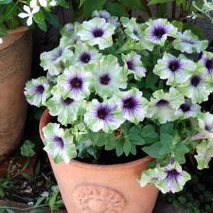 爽やかなグリーンに 鮮やかな紫 素敵な色のペチュニア