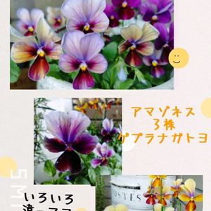 こんにちは♪ 朝は凍ってションボリ⤵ 陽射しと共に凍結の魔法から目覚めます✨シャキッ ゲブラさんのビオラ♡ ・オリジナルビオラは 今年も育てています ミステリアスシリーズの ・アマゾネスは初めて ・Maria(マリア)横から上から