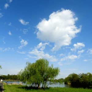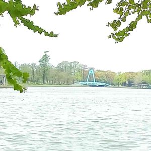 今朝の散歩道です。 水元公園の蕎麦屋さんのテラス席から、☁と水辺を撮りました。