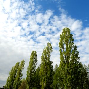 今朝の散歩道です。 空と☁とポプラ並木です。