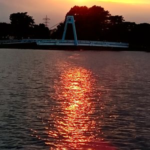 今朝の散歩道です。 水辺の風景です。 水辺に、お陽さまが写り込んでいます。