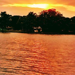 今朝の散歩道です。 水元公園、中央広場の🌳の上に🌄が、出て来ました。