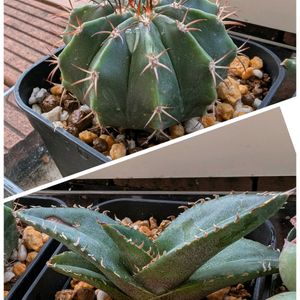 メロカクタス 魔雲 (上) アガベ 鬼爪 (下) 根無しの状態から育てている多肉植物達。 半年くらいでぼちぼち大きくなりました。 いずれも特徴がまだ出てませんが、無事に大きくなってほしいです。