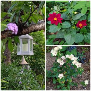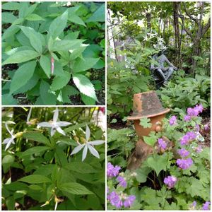 我家の草花 ↖️ペンステモン ↗️バーベナ(new) ←バーベナ赤(new) →フサスグリ ↙️ドクダミ八重 ↘️フロックス(new)
