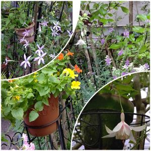 草花 ↖️イソトマ →せいたかみぞほうずきとフクシア ↘️フクシアアップ冬越し何とか成功