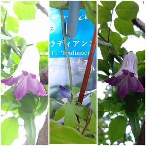 クレマチス⑧ラディアンス 頂芽優勢サンプル フェリシテペルペチュのアーチの 高いところで一つだけ咲いていた