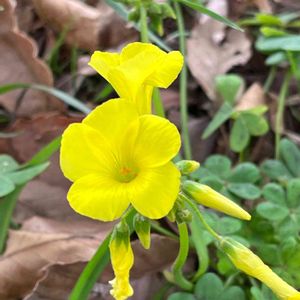 【オオキバナ カタバミ・大黄花片喰】 学名:Oxalis pes-caprae おはようございます🪆⚪︎⚪️⚪︎◯⚪️ どうぞ皆様も良き一日を 属名:Oxalisはギリシャ語の「oxys(酸っぱい)」に由来。この属の植物にはシュウ酸塩を含み酸っぱいものが多い事からきている。種小名のpes-capraeは「山羊の足」と意味。先が割れた形を例えてる。花言葉は「輝く心」。こちらは様々な葉っぱを楽しむ場所🤍輝いてきた🐈♪