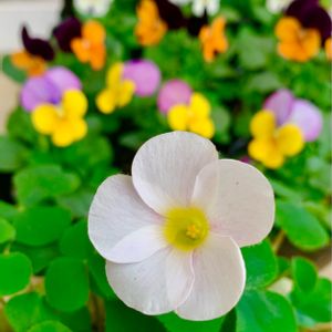 🌸475🌸 パンジー*ビオラ🌼オキザリス 今日お迎えしたお花【その②】 お義母さんに誘って貰って一緒に、 お花屋さんへ行って来ました😊 白地にピンク色がうっすら🌸可愛いです💕 今から植えます✨🪴✨ 花言葉は『輝く心』『心の輝き』『喜び』『母親の優しさ』『あなたと過ごしたい』『決してあなたを捨てません』 *My garden*
