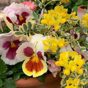 こんばんは😊 またまた寄せ植えです😊 今年は、パンビオさん出てから作った寄せ植え、小さいの(ビオラとリーフだけ)を混ぜたら、今までで20個もありました😆 毎年、たくさん作っても、なかなかしっくりこない寄せ植えもいっぱいあります😅 この寄せ植えも、もう少しはっきりしたビオラを使えば良かったかなぁて🌸 小さなビオラで可愛い子なんですが、淡い色なので全体的にぼけた感じになりました😅 まあ、優しい感じと言うことで😆🌸