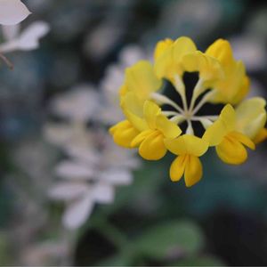 カロライナジャスミンが咲きだしました🌼 コロニラ とアイビーを一緒に植えた小さな寄植え🪴