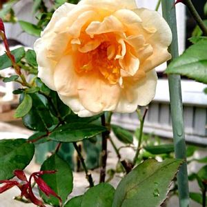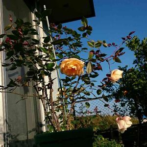 待ちきれない^ ^ 早く咲かないかなぁ サフラノ ティーローズ らしく枝は暴れ始めました…