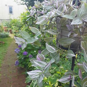 梅雨の合間に日光浴の観葉植物🪴 トラデスカンチア、また暴れております。 そろそろ、すっきりカットしましょう✂️ アロマティカスもよく伸びて、棚の2段目では入りきらなくなりました〰️💦😅 この時期に、✂️して、可愛い鉢にしてプレゼントに‼️と、思うのですが…なかなか💦😅 ペペロミアも枯れそうになったり、縮小されながら、なんとか頑張っています❣️ 最近右肩のベルのマークの数字が消えません。ほかの方も何人か〰️💦😅。どこか、忘れてるんでしょうか⁉️