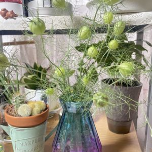 ベランダで楽しむ♪グリーンたち🌿 ニゲラさんの実はドライフラワーで 楽しめるそうです! お花も実もとっても素敵💓 トラデスカンチアも! ピンク色が出てきました〜 リトルミッシーちゃんも! モリモリです⤴︎