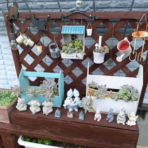 〜多肉タウン🏘完成!!!〜 今までまったく使っていなかった家の裏の 路地的な空きスペースを 思いきって活用することに✨ 玄関のある表側は日差しが強すぎて 夏の管理が毎年の悩みでした。。🤔 この裏側は少し狭いですが、 基本的に日陰で、 夕方2〜3時間ぐらい日が当たる☀️ので、 直射日光が苦手なコやサボテン類たちは 最適かも✨という事で、、 大移動!!!お引越し!!!🌵 ついでに倉庫に眠っていた サビサビハシゴやBBQの網なども 引っ張り出してきてリサイクル♻️ 柵をすればワンコもちょろちょろあそべる ドッグラン付き多肉住宅街が できあがりました!!!✨