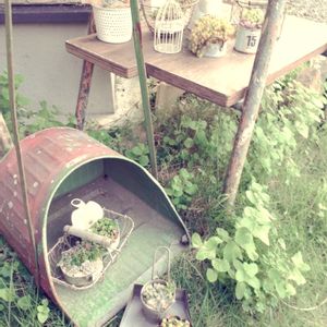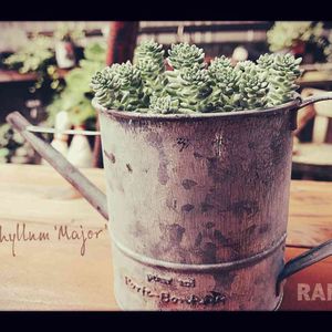 ジャンクな ちりとりの中に リメ缶セダム寄せを IN✨