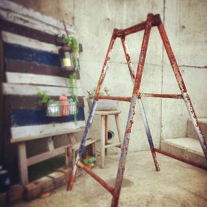 おはようございます😊天気予報を見て、写真だけを撮ろうと思って外に出たら、どしゃ降りの☔でした😫 先日、主人の実家から頂いて来たサビサビ脚立😏新しい脚立をススメルお義母さんに、「出来るだけ古いのを下さい!」とお願いして、出して来て下さいました😘とりあえずは、こんな風にディスプレイ。これから、また色々考えてみます🙆