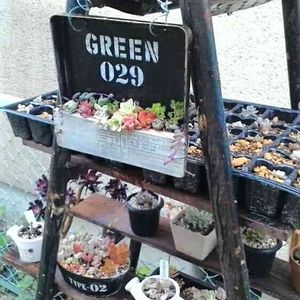 おはようございます♪ 良いお天気になりました✨✨ 東側のテラス下に置いてあったサビサビ脚立を南向きの物置前に移動しました⑅◡̈* 一日中お日様があたっているので多肉達にはここの方が良いかな👍