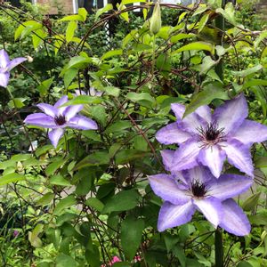 クレマチス💜美佐世💜 早咲き大輪系💜 母の日に息子のお嫁さんにいただいたクレマチス💜何年前かなー 10年は経っている💖 毎年モンタナの次に開花してくれるクレマチス💜です😄