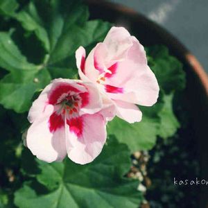 4月に明るい日陰に植えたゼラニウム キャロル ゾナール系 やっと花が咲きました🌸