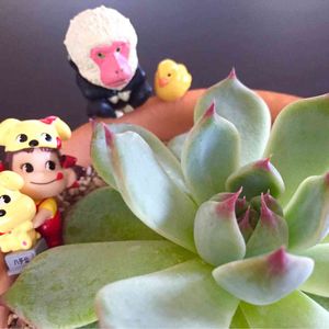 皆さんの可愛い可愛い桃太郎🍑を見てると、うちのハゲててぱっかーーーんな子をのせるのは、ずっとハズカシがっておりましたが、 (/-\*) こないだbikkeさんがうちの子もぜひ!とコメントしてくれたので💖(←人のせい笑) (。-∀-)ニヤリ あまりにも、皆さんのカワイコちゃんと違うので、ニセモノではないかと疑ってみたりして。いや、育て方がへたなだけ、だってまだピカピカの多肉1年生なんだもーん ( ー̀εー́ ) きびだんごをあげないと、本物はお供してくれないそうなので今日のお供は影武者のいぬ🐶さる🐒き、き、、じ、、、、🐣?
