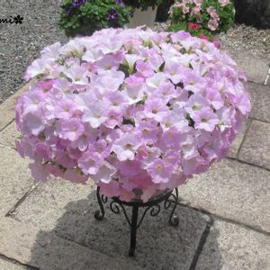 ペチュニア さくらさくら。 冬越し株です。 開花してきました。 8号鉢に1株植えです。