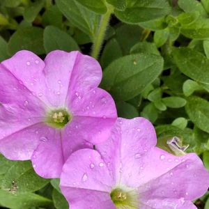 挿し芽したペチュニアが咲いてきました。 天気悪いですが、雨ざらしでも丈夫でうれしいです。