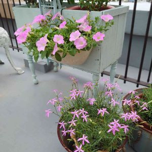 ペチュニア さくらさくら🌸 挿し芽っ子🌱 沢山出来たので、大・小 作ったのが、咲き揃いました。 美人姉妹💗で~す✴