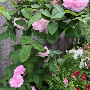 おはよう☁️ 今日スカッと☀️じゃなく、、、 どんより曇り空 雨じゃ無いからまだ👌 あっこさんの南のガーデン 咲いてるね〜我も我もと咲いてるね〜😜 ER・アレキサンドラオブケント 余りの花の重さにみんな 御辞儀です (*´∀`*)