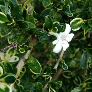 5月20日 斑入りハクチョウゲ 🌸ハクチョウゲの花🌸 白い🤍小さな花が咲きました🎵 可愛いです🤍 エッグタルトさんと寄せ植えで活躍していた子です🤗 アカネ科 花言葉:純愛