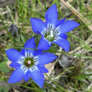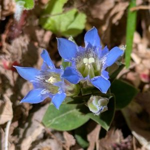 フデリンドウ 明るい山裾の草地で出会う🔵一つの花茎に一つのハルリンドウとは違っていくつもの花を咲かせ、ブーケのようになっている 美しく青きドヨウ🏷 花冠の先端は5つに分かれていて、その間に短い副片がある🔷 リンドウ科なので、咲き始めは雄しべが雌しべを取り囲んでいて、花粉が放出されると外側に倒れる♡ 次に雌しべの柱頭が2つに割れて他の花の花粉を受け入れるようになる雄性先熟♬ 茎は紫色を帯びていて、根生葉は見当たらない💚