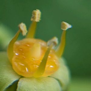 今日、1つめの投稿です。 ☆ タカトウダイ (長池公園にて 8月7日) 同じ場所で見てから、1ヶ月以上が経ってました。 (前回は7月9日に投稿) その後が気になっていた花! 新たな展開です✨ ① 萼も花弁もなく、花弁のように見える部分は、腺体(蜜が出てくるところ)だそうです😮 不思議な作りの花だけど、写真を見ると、さらに不思議な超常現象? 雄しべが空中に浮いてる😲 蜘蛛がイト的にイトを張ったとは思えないけど…… ② 引いて眺める ③ 雌性期、雌しべの3つの花柱、それぞれの先が、2つに分かれてます。 ④ 雌性期から雄性期へ。 ふくらんだ子房(実)が倒れ、雄しべが出て、腺体には蜜が、あふれてる😋 ⑤ その雄性期も終わる頃、 隣の半開きの苞葉からは、新たに雌しべの柱頭が伸びてきてる🔍️