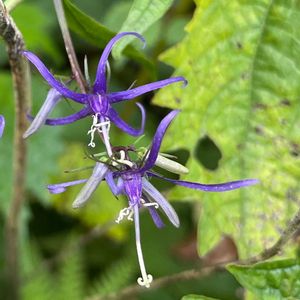 シデシャジン(四手沙参) 学名:Asyneuma japonicum) キキョウ科シデシャジン属の多年草。 花 期 7~9月 高 さ 50~100㎝ 生育場所 山地の林縁、草原 分 布: 北海道、本州、四国、九州、 ⚪︎在来種 この特徴的な青い花が好きです💙😊 ⚪︎謂れ: 神社のしめ縄や玉串などにつける白い紙(四手)のように花が細く裂けることから。 特徴: 茎を切ると白色の乳液が出ます。 葉には根出葉と茎に互生する葉があり、卵形~長卵形。 柄には翼が見られます。 茎先や葉腋に総状花序を出します。 花は青紫色🟦で、独特な形をしていて、花冠は深く5裂して、裂片は細く、反り返ります。 5本の雄しべと1本の雌しべが突き出します。 果実は扁球形の蒴果です。