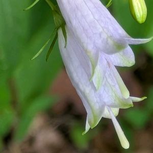 サイヨウシャジン と ツリガネニンジン 道端に生える 美しく青きドヨウ🏷 花柱の形なのだけれど、開花すぐは棍棒状🟪 花粉を受け入れる準備ができると、先は下向きに3つに分かれる♬ さて、花冠が少しすぼまって壺型っぽいのはサイヨウシャジン(細葉沙参)と言われるけど、変異が多いからなぁ‥‥🌀 花柱が花冠から長〜く突き出ているのはサイヨウシャジン💜 でもツリガネニンジンも突き出るので、これは比較の問題だよねぇ🤣 糸のように細い萼片に、小さなギザギザがなあるか、はたまたツルリとしているかどうかで判断かな🌀 3枚目はギザが見えないのでサイヨウシャジン、4枚目はあるのでツリガネニンジンにしときます( -᷄ ᴗ -᷅ )