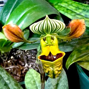 このユニークなお顔の蘭の名前は何でしょう ((o(´∀`)o))ワクワク 先日の展示会で視線を感じるな〜と思って |ω・)探したら 華麗な蘭のお姉さま方の間にこのお猿🐒顔の子が 何か言いたそうに両手(両耳?)を広げてたの(o´艸`) 口の中も唾液で潤ってるのが見えて🤣🤣🤣 でも、言葉が届かない💦 お名前わかったら心が通じてたかもって(⌒-⌒; )