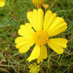 12月8日、神奈川県相模原市の相模原公園で撮影しました。小さな黄色いお花でした🌼 名前が分かりません。教えて頂けますか? 優貴さんから、ヘレニウム ダゴダゴールドと教えて頂きました🌼ありがとうございました😊