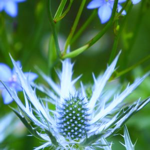 こちらのエリンジウムはビッグブルー。 先ほどの(たぶんブルーホビット)は 触れても痛くありませんが ビッグブルーは葉も花も要注意。 ほとんど凶器です。 でも、このあとさらに美しく青く色づくのが 楽しみでしかたありません。