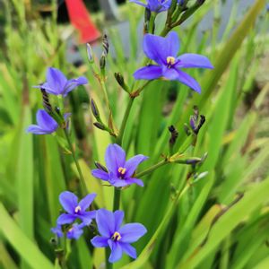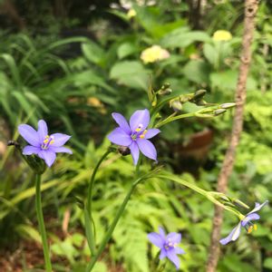 主の居ない庭にまた初めての花に出会いました。 早朝に開き正午前には閉じるそうです。 今日は暑くなるというので、早朝散歩にして良かった。 💙アステア・エクロニー💙 青紫色の小さな「一日花」 アヤメ科 アリステア属の常緑多年草 原産地: 中央〜南部アフリカ 花期: 6〜7月 別名: ソライロキキョウアヤメ 英名: Blue star