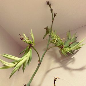 アガベ 雷神の花をそのままにしてたら 子株がニョキニョキ・・・って そんなところから子株出るとですかっ!! 株元かららじゃないと?? もうビックリ‼️