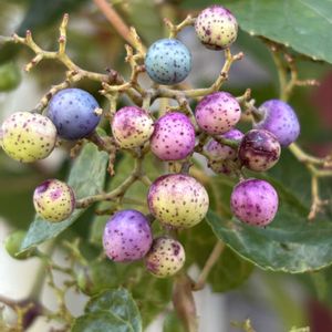 ノブドウの実がカラフルになって可愛い〜💎️.*・゚ෆ˚・*. 近くのお寺のサンゴジュ、もう黒い実になってきています🔴⚫️