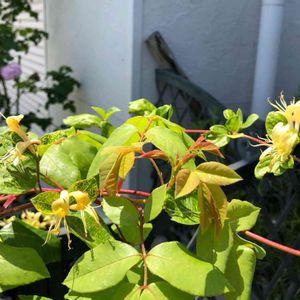 ハニーサックル・ゴールデン💛 甘い香りに誘われて〜🐝 ではなく私😝 とても優しい甘い香りなんです💕 バラのデプレさんのところに植えてフェンスに一緒に絡ませているので目立ちません😵 ハニーサックルのウインドワードは花芽さえ見えません😥