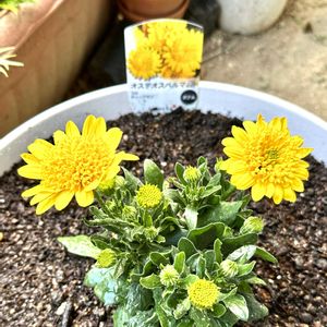 これも見切り品のオステオ ダブルオステオスペルマム ディープサン 少し前に見つけてコソコソとお買い上げ~🤭 ビタミンカラーの黄色が元気を運んできそう🥰 お花が小型化してるかも😝 持ち主自粛で巨大化してるのだけどなぁ🤪