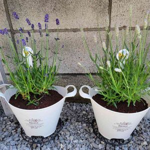 フレンチラベンダーと入れ替わるようにイングリッシュラベンダーが咲きました😊 写真撮るの難しいですね💦 奥のブルーは四年目です。 手前のピンクは今年仲間入りしました。 ピンク、去年見かけたときに買い逃してしまって後悔したので、今年は見つけた時にすぐお買い上げしました!淡いピンクかわいいです〜🥰 ブルーは一度も植え替えしてないせいか、今年はちょっとお花が小さいです。 今年は植え替えチャレンジですね〜緊張です💦