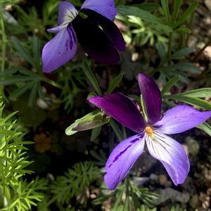 トリアシスミレは葉の形が鳥の足のような北米産のスミレの仲間で花色が上下で分かれているタイプです