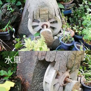 夕方のパトロール 石の日にちなんで ① 石の水車 ② ロックガーデン? 石付けに用意してある石 ③④⑤ 石付け 盆栽