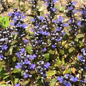 アジュガ…💜 今年はかなりまばら😅 しかも葉っぱの色が悪い😫 来年以降のためにも、なんとかせねば😤